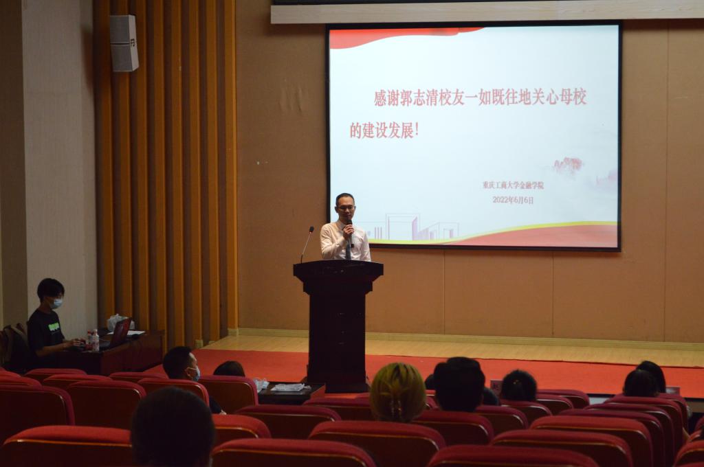 在主题发言环节,郭志清校友分享了自己的大学成长经历,鼓励同学们培养思考能力和学习能力;学会为人处世、做人做事,除了学好专业知识,积极通过实践的考验和打磨成长成才;在择业上切忌眼高手低,要找准定位并适时调整,保持不怕“折腾”,积极进取的态度。在互动交流环节,同学们围绕考验跨考、职业规划、专业素养、学生组织经历等提问,郭志清校友结合自己的经历释疑解惑,耐心给予指导和建议。