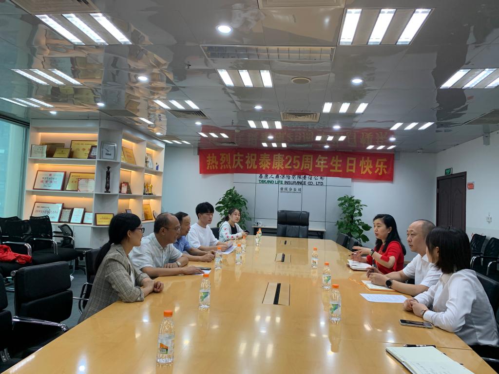 2021年8月27日上午,9728太阳集团党委书记、副院长王建明、保险系主任谭湘渝及就业联络员兰丽娟带领实践团队赴泰康人寿保险有限责任公司重庆分公司开展“小我融入大我 青春献给祖国”专项调查社会实践活动。泰康人寿重庆分公司人力资源部经理周蔚然、第二本部培训部经理陈祥龙以及2019届保险专业毕业生陶明月等对实践团的到来表示热烈欢迎,并积极参与到访谈与问卷调查项目中。