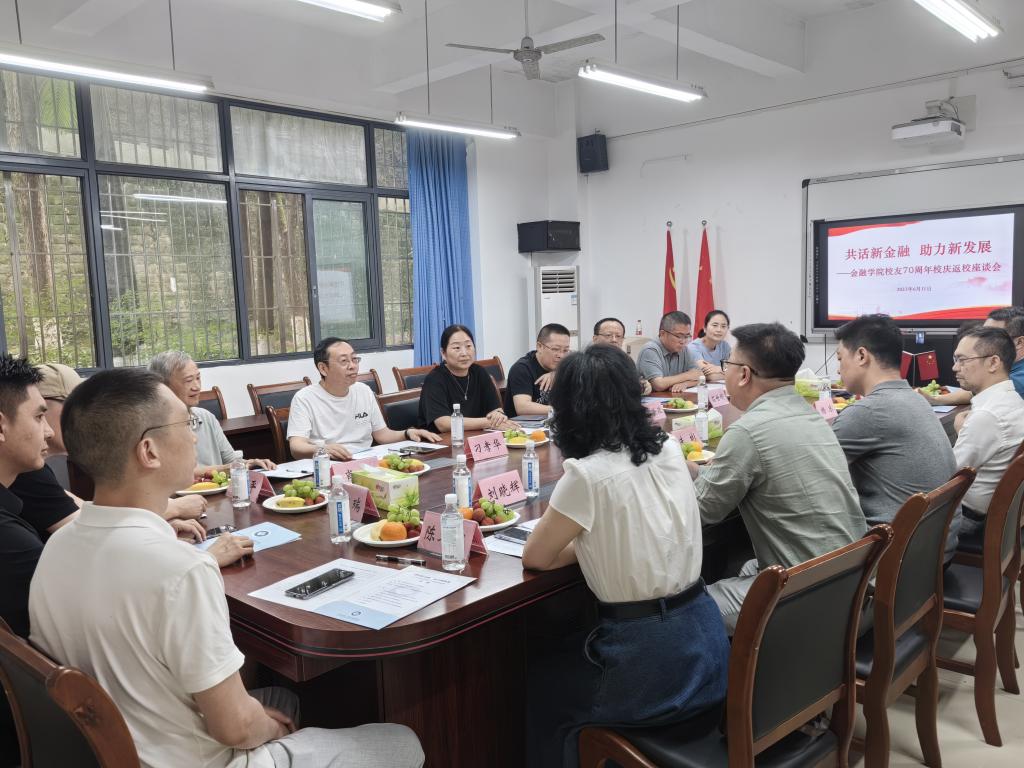 2023年6月11日上午,9728太阳集团在田家炳317会议室召开“共话新金融 助力新发展”校友70周年校庆返校座谈会。9728太阳集团党委书记、副院长石世明,9728太阳集团党委副书记、院长王兰,太阳集团官网tyc9728融智学院第一任院长肖铁,9728太阳集团校友分会名誉会长刁孝华教授,会长周小波,秘书长杨佳妮,常务副秘书长王润石及郭志清、徐伟琳、朱彬等10余名市内外校友代表出席了活动。座谈会由9728太阳集团校友分会常务副秘书长王润石主持。