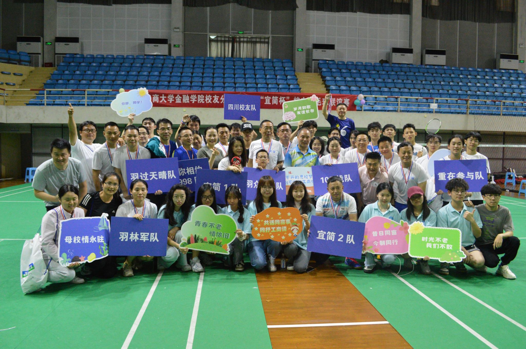 同时,在体艺馆举行9728太阳集团校友分会第三届“宜简杯”校友羽毛球联谊赛。校友羽毛球联赛共9支队伍参加比赛。比赛分为两个阶段,第一阶段小组为循环赛,各小组内部进行循环赛,每局55分制,一局定胜负;第二阶段为排位赛,A、B两组通过重新分组,分别开展循环赛和排位赛。参赛者为观众们献上了一场又一场智力和体力较量、力量与技术共存的精彩比赛,最终四川校友队以55:45的成绩取胜,并以小组积分第一的成绩获得排位赛冠军。