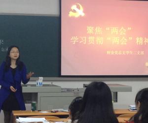 活动开始,11级财政专业的廖培莲同学对今年三月在北京召开的“两会”内容进行了基本情况介绍,她围绕“两会”召开的背景、“两会”的意义、“两会”的十大热点进行了解读。接着大家针对改革、民生、反腐倡廉、收入分配、经济运行、生态文明、国际关系、法律法规修改等方面进行了讨论。学习过程中,支部党员踊跃发言,积极交流了对“两会”的感想,现场气氛活跃。毕业生党员们尤为关注“两会”中的提及的大学生就业问题,10财政的党员王瑞就表达了对政府对大学生创业政策的期待,表示大学生要加强自身综合素质提高,勇于创业、适应激烈的社会竞争。会议过程中大家还开展了批评与自我批评的工作,为今后的学习指明了方向。