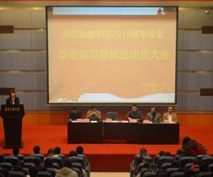为了切实加强对2014届毕业生的服务和管理,11月7日下午,财政9728太阳集团2014届毕业生毕业实习和就业动员大会在博智楼7100报告厅顺利召开。财金学院党总支杨萍书记、刘代成副书记、财金学院副院长毛跃一以及财税系副主任尚可文、金融系副主任陈勇阳和投保系副主任谭湘渝教授出席本次大会,400余名2014届毕业生参加了此次大会。