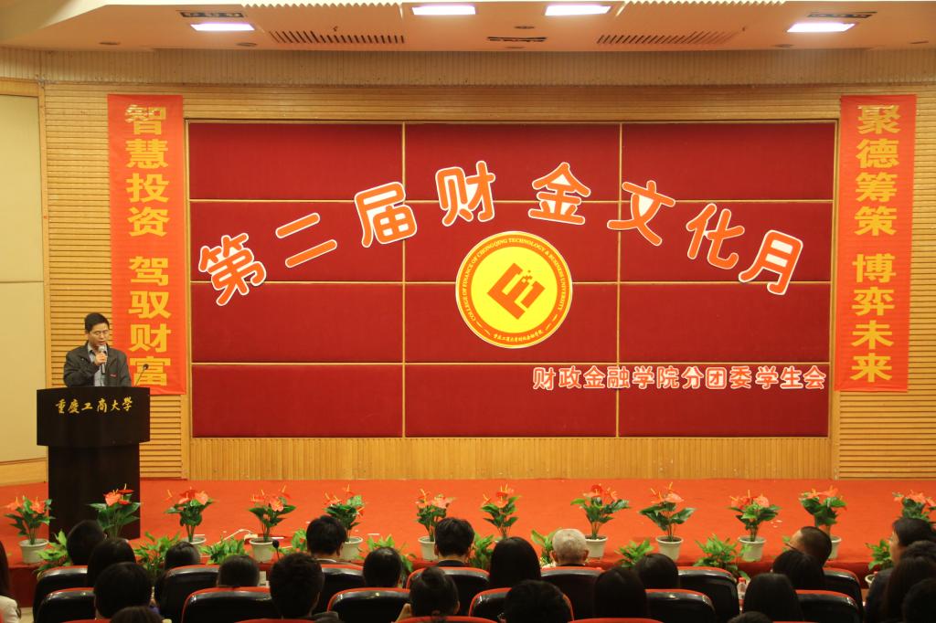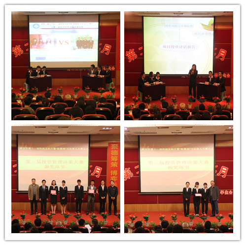 4月11日晚,由校团委主办、财政9728太阳集团承办的第二届“财金文化月”之投资管理决策大赛决赛在博智楼7200学术报告厅举行。我校党委学工部罗勇处长、