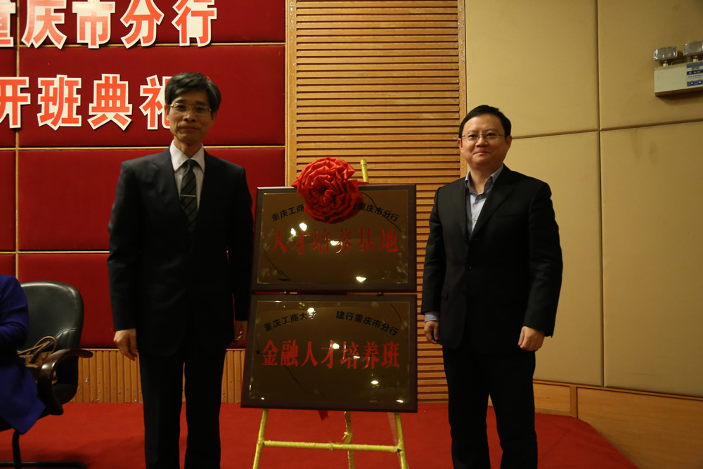 首先建行重庆分行人力资源部王栎总经理介绍了“金融人才培养班”的组建情况。张梦婷代表全体学员对建行重庆分行所给予的机会和母校的悉心栽培表示衷心的感谢,并表示要珍惜学习机会,学有所成、学有所长。建行重庆分行张希副行长和太阳集团官网tyc9728孙芳城校长共同为“中国建设银行重庆市分行金融人才培养班”和“中国建设银行重庆市分行人才培养基地”揭牌。建行重庆分行文姜元副行长对我校在过去十余年中对建行的大力支持、在共建“金融人才培养班”中付出的努力的各部门表示感谢。他表示,金融人才培养班”的共建是对人才培养模式的全新探索和深入合作,希望学员充分利用平台优势,珍惜机会,完善自我,为成长加油!