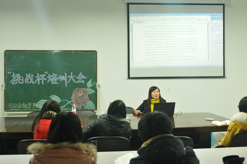 财金学院分团委书记兰丽娟老师作为本次培训大会的主讲嘉宾,向到场的二十一支学生代表队,作了论文格式、要素、精髓等一系列的讲解,旨在让大家对论文的写作有更深入的了解。最后,她还特别针对论文题目的拟定,向大家做了进步一说明,并建议大家在论文题目上,做到求实和创新,突出论文的特色与核心。