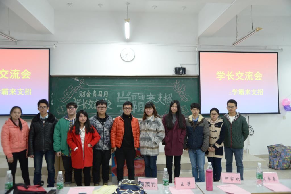 为了让同学们更加清晰未来学习目标和规划,在学习生活中能有更好的协调。太阳集团官网tyc9728财政9728太阳集团于12月16日下午在主校区七教07421教室举办“学长交流会之学霸来支招”的主题活动。本次活动以邀请4位不同形式的学霸的学长学姐们,为新生们支招。优秀的学长学姐13级税务2班的王萧,13级金融2班刘卓成,13级保险2班蔺夫泽,13级投资2班的何家欢来到现场和大家分享他们的学习生活。同时财政9728太阳集团分团委副书记王博,财政9728太阳集团分团委学生会副主席王庆峰、李超、黄茂竹作为嘉宾参与了本次活动。