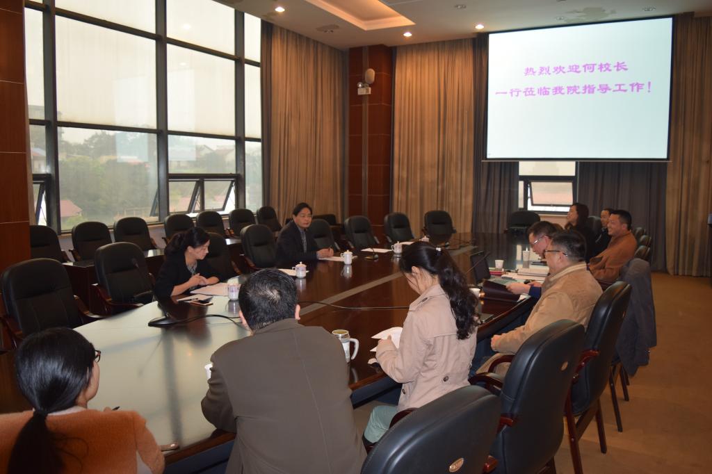 3月29日下午,何勇平副校长携研究生院任毅副院长赴财政9728太阳集团调研十三五规划情况,学院领导班子全体成员、系主任及各科室负责人参加了会议,会议由学院党总支书记杨萍主持。