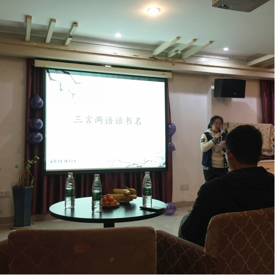 李超学长发言后,一场读书盛宴随之开启。同学们纷纷分享与交流,在《生死场》上品读萧红,品读时代故事;于《情书》下看到爱情,看到清纯与永恒;在《解忧杂货店》中交往书信,交往着心灵与美好;于《龙族》间见证梦想,见证爱情与友情。进行“三言两语话书名”游戏,一问一答,欢乐中,拓宽知识。观赏《雷雨》,用经典唤起心灵的共鸣。最后,在黄茂竹主席的总结中,盛宴也卸下了帷幕。