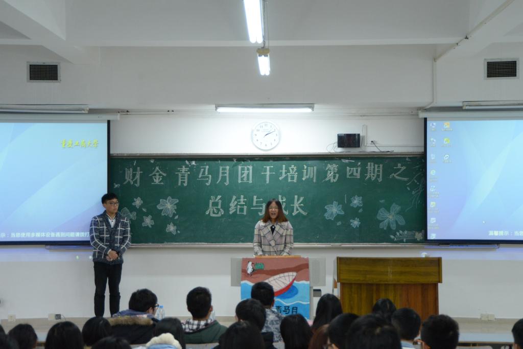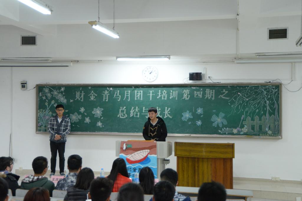 主题为“总结与成长”的第四期“财金青马月”团干培训于12月18日顺利举行。出席这次培训的嘉宾有财政9728太阳集团分团委副书记王博、学生会主席邓美玲、副主席李超、副主席黄茂竹、副主席王庆峰,他们与财金学院各班团、学生会各部长一同回顾了本学期精彩纷呈的团干培训活动。