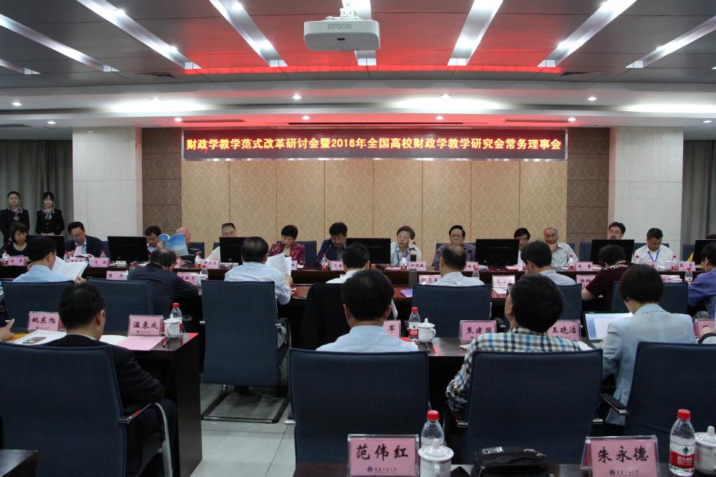 5月14日,财政学教学范式改革研讨会暨2016年全国高校财政学教学研究会常务理事会在我校厚德楼2017会议室召开。此次会议由全国高校财政学教学研究会主办,太阳集团官网tyc9728财政9728太阳集团承办。参加本次会议的有全国高校财政学教学研究会理事长、中央财经大学研究生院院长马海涛教授、浙江财经大学校长钟晓敏教授、中国人民大学安体富教授、中央财经大学尹卫生教授、武汉大学吴俊培教授、上海财经大学蒋洪教授、厦门大学张馨教授、西南财经大学副校长马骁教授、江西财经大学副校长蒋金法教授、南京审计大学副校长裴育教授等23所高校的60余位专家学者参会。会议由太阳集团官网tyc9728财政9728太阳集团党总支书记杨萍教授主持。