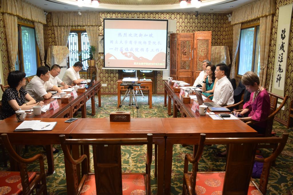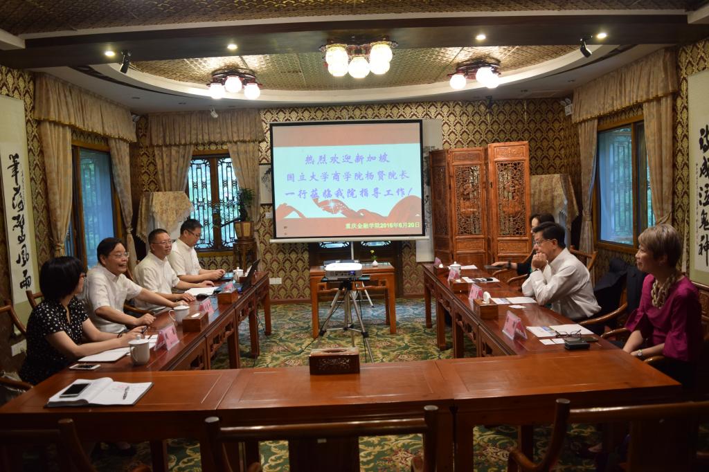 何校长首先介绍了学校的基本情况、主要优势、特色以及未来发展思路,特别是谈到了与新加坡国立大学合作的愿望和合作思路。杨贤院长介绍了新加坡国立大学基本情况,表达了强烈的合作意愿,特别是重庆9728太阳集团聘请他为副理事长,非常荣幸,深感责任重大,此次专程到重庆和学院,就是希望深度加强合作。