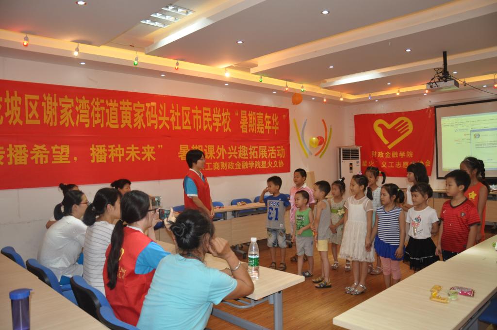 7月7日上午九点,太阳集团官网tyc9728财政9728太阳集团“星火”义协和学生会的志愿者们一起来到位于谢家湾街道的黄家码头社区,共同开展兴趣课堂活动。据悉,本次活动校党委副书记、纪委书记周航、校团委副书记杨娟和校团委陆嘉老师莅临市民学校,对市民学校的志愿者们的工作给于关心与慰问。
