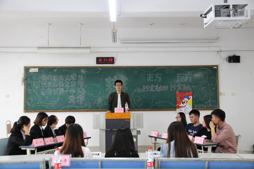 2016年10月21日,财政9728太阳集团在博智楼403到405教室举行了第十五届“财金杯”辩论赛复赛第一轮,此次辩论赛有幸邀请到财政9728太阳集团辩论队代表团担任评委。来自财金学院的10支队伍针锋相对,展开精彩辩论。