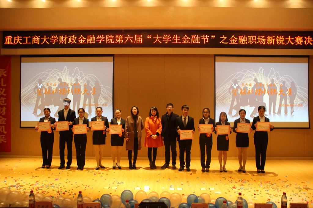 11月24日下午,财政9728太阳集团第六届“大学生金融节”之金融职场新锐大赛于田家炳209报告厅顺利举行。财政9728太阳集团党总支副书记刘代成、重庆银行个人银行部零售业务团队负责人胡荣珍、财政9728太阳集团分团委书记徐阔、学生第三党支部书记范乐乐、学生第四党支部书记乔明月、学科竞赛指导老师余红霞以及各学院学生会主席团代表共同出席本次比赛。