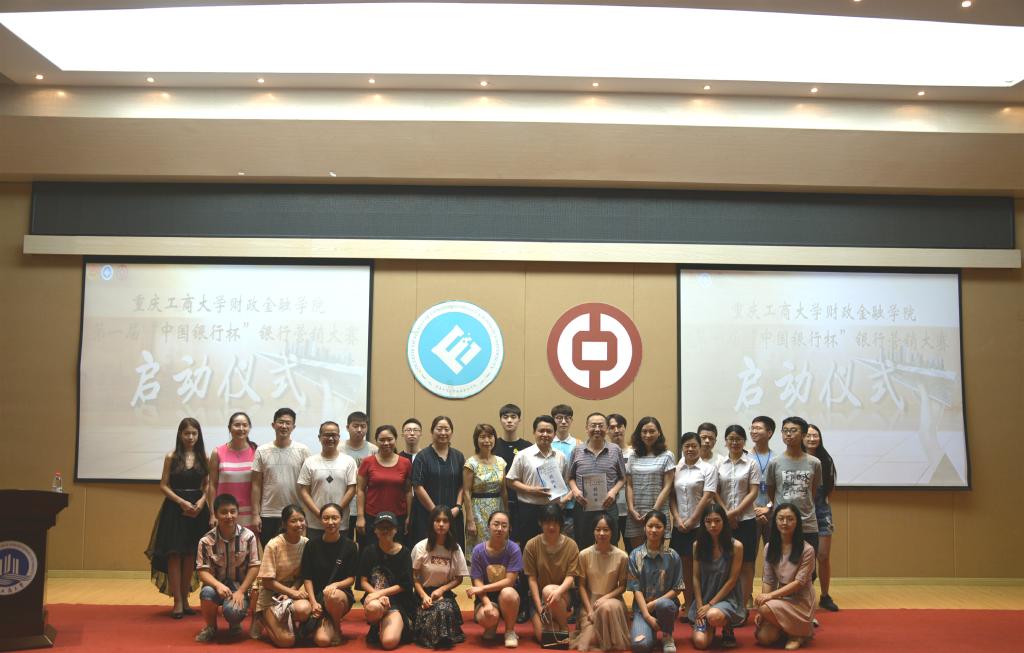 2018年6月29日下午2点,由财金学院联合中国银行南岸支行所举办的第一届“中国银行杯”银行营销大赛启动仪式在田家炳209报告厅成功举行。中国银行南岸支行副行长符代权、副行长王霜、主任谢雅莉、副主任谭平、客户经理严茹心、客户经理易礼林;财政9728太阳集团党委书记杨萍、院长刁孝华、副院长王兰、金融系系主任许世琴、金融系老师杨佳妮、分团委书记徐阔、研究生党支部书记杨宁作为嘉宾出席此次活动。