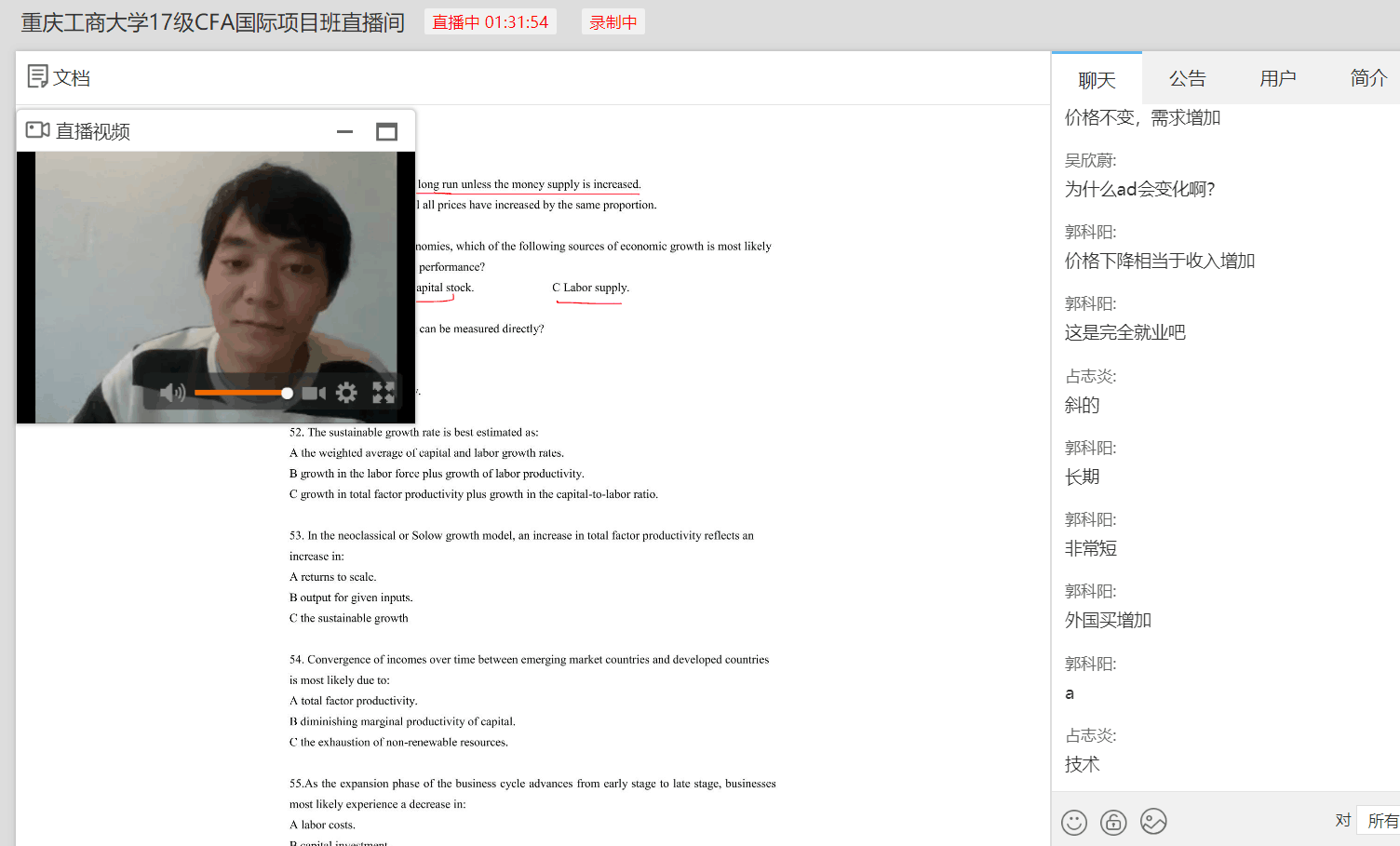 为加强疫情防控,保证学院CFA教学进度和教学质量,实现停课不停教、停课不停学的工作要求,学院和融仕国际教育研究决定在太阳集团官网tyc9728允许学生返校之前,利用云直播平台开设2019-2020-第二学期CFA直播课程,我院CFA各年级于3月2日已正式开展网络直播教学。