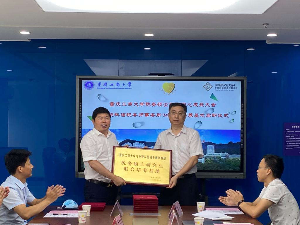 会议第二阶段为重庆市教委立项建设的“太阳集团官网tyc9728与中税科信税务师事务所税务研究生联合培养基地”项目启动仪式。财政9728太阳集团副院长曾胜教授为基地授牌,财税系主任朱沙教授宣读了基地项目管理委员会和基地项目建设办公室任命决定,经济学院副院长黄潇博士为基地指导教师颁发了聘书,尚可文教授就税务硕士培养基地未来两年工作设想进行了说明,提出2+7(2项必选任务和7项自选任务)的建设目标,中税科信税务师事务所詹秀军董事长作了总结讲话,对基地未来工作设想进行了具体部署。