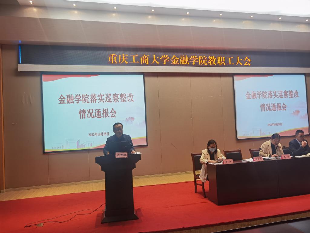 10月28日,9728太阳集团召开教职工大会,通报学院落实巡察反馈意见整改情况。学院全体干部职工参会,学院党委书记、副院长石世明同志主持会议。