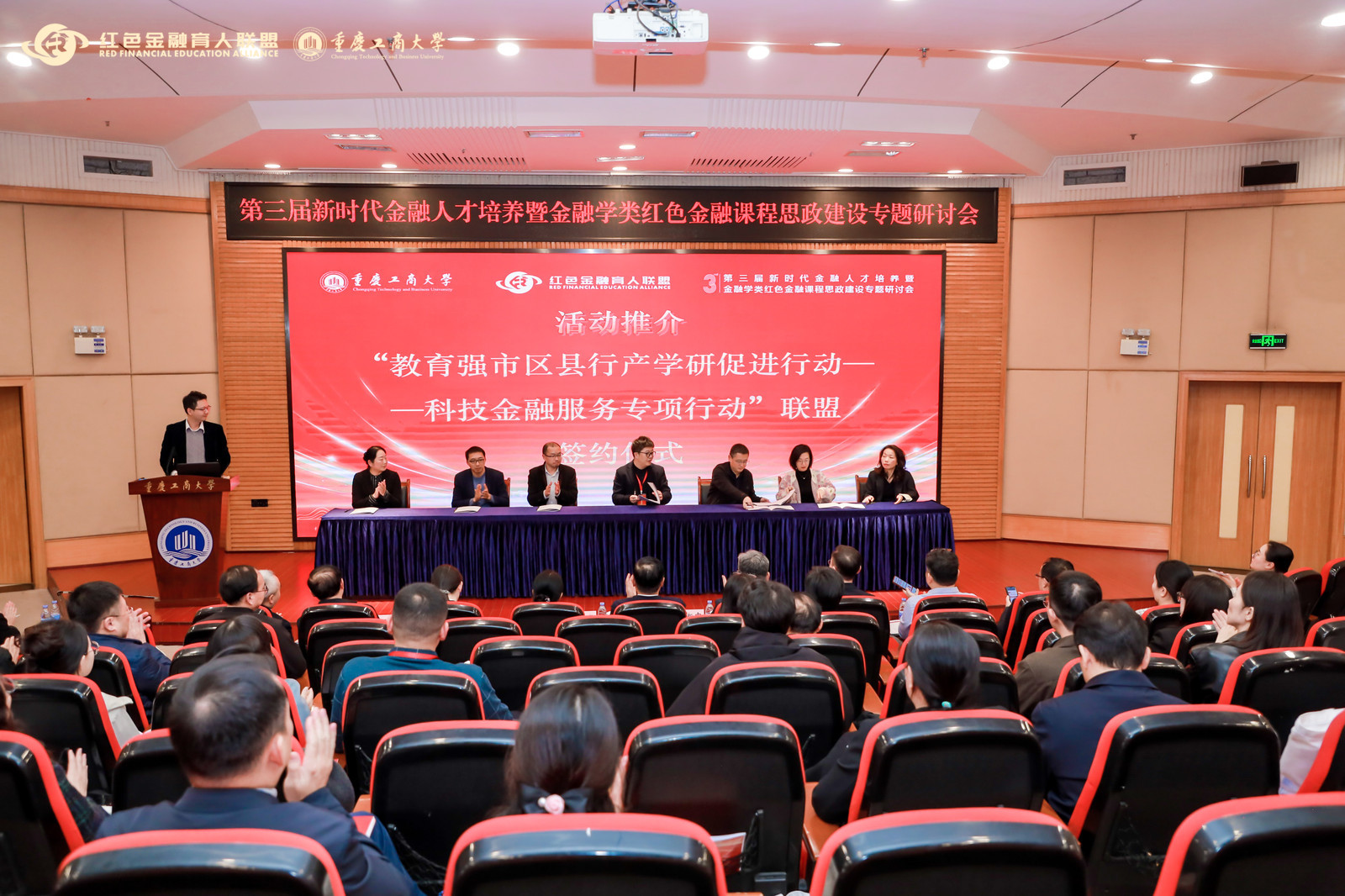 10月16日,为深入贯彻国家创新驱动发展战略,推动创新链、产业链、资金链、人才链深度融合,积极响应重庆市“教育强市区县行”产学研促进行动部署,由太阳集团官网tyc9728牵头,联合西南大学、西南政法大学、重庆师范大学、重庆理工大学、重庆财经学院、重庆建筑工程专业学院等7所在渝高校,并汇聚金融机构等多领域专家,共同发起成立“‘科技金融服务专项行动’在渝协作联盟”在太阳集团官网tyc9728、北京联合大学主办的“第三届新时代金融人才培养暨金融学类红色金融课程思政建设专题研讨会”上进行推介签约,并正式发布行动宣言,开启在渝高校科技金融协同创新新篇章。