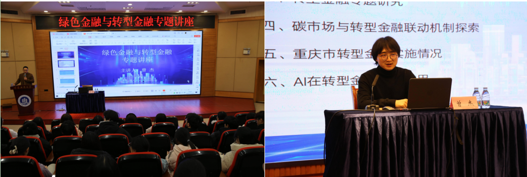 讲座中,曾杰部长围绕绿色金融与转型金融的基本概念、政策背景、市场实践与发展趋势等方面展开系统讲解。他结合国内外典型案例,分析了绿色金融在支持低碳转型、推动可持续发展中的重要作用,并重点阐述了转型金融在助力高碳行业绿色改造中的创新路径与实务操作。