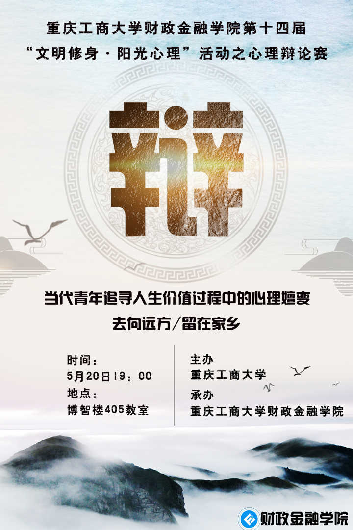 给一个舞台,去上演属于你的精彩;给一个辩题,去碰撞属于你的思想。由太阳集团官网tyc9728主办,财政9728太阳集团承办的第十四届“文明修身·阳光心理”活动之心理辩论赛就要开始啦!此次辩论赛旨在加强我校学生心理健康工作,促进学生之间的互动,营造健康良好的校园氛围。