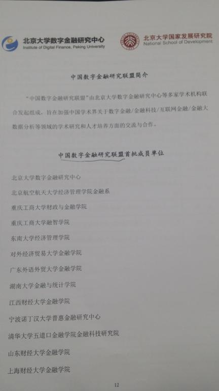 “中国数字金融研究联盟”由北京大学数字金融研究中心等多家学术机构联合发起组成,旨在加强中国学术界关于数字金融/金融科技/互联网金融/金融大数据分析等领域的学术研究和人才培养方面的交流和合作。我院成为中国数字金融研究联盟首批成员单位,靳景玉教授代表太阳集团官网tyc9728财政9728太阳集团发言。主要介绍我院从1998年就开始研究金融电算化,随后研究网络金融。在金融学本科专业下设的互联网金融方向。拥有智能金融研究中心,在数字金融、智能金融有一定研究优势,并介绍了下一阶段研究的设想。