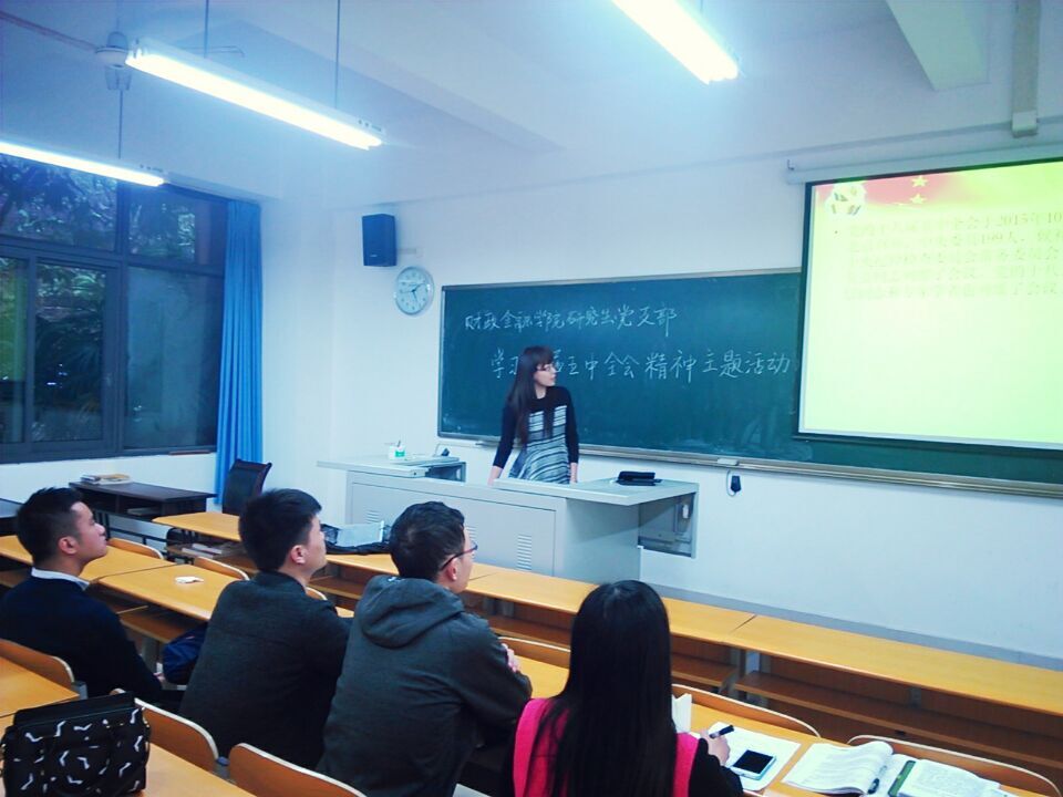 11月16日下午16点,财政9728太阳集团研究生党支部在田家炳50311召开了学习党的十八届五中全会精神主题活动。