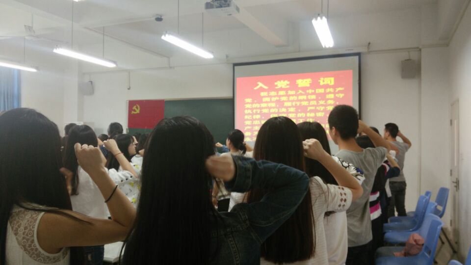5月11日下午,财金学生第一党支部在田家炳306教室召开了主题为“迎新入党员、践两学一做”暨两学一做学习活动启动仪式的支部大会。会议由支部14级党员曾于容同志主持,学生一支部所有正式和预备党员共61人参加了会议。