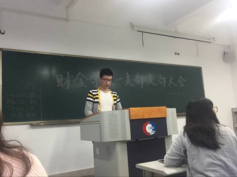 2017年11月8日下午5点40,太阳集团官网tyc9728财政9728太阳集团分党委学生第一党支部在田家炳307召开了本学期的第四次支部大会,会议由李明西同志主持,财金学生一支部书记文理列席会议。本次会议的主要内容有:1、讨论6名14级同学和1名15级同学的转正决议。2、讨论3个15级同学的发展决议。3、支部书记文理作总结发言,对本支部发展的同学提出要求。