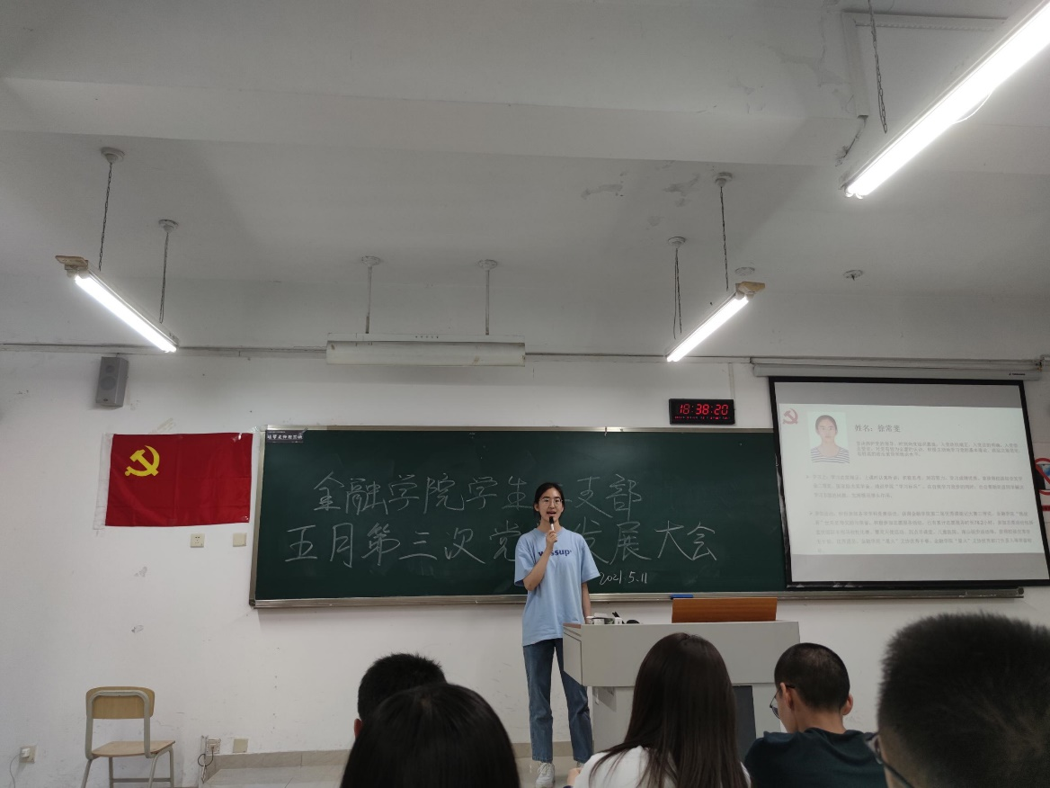 2021年5月11日星期二下午,9728太阳集团学生第二党支部在博智楼104教室召开了五月第三次党员发展大会。出席本次大会的成员有9728太阳集团学生第二支部书记乔明月老师及其他党员同志、发展对象。本次发展大会由朱钰婷同志主持。