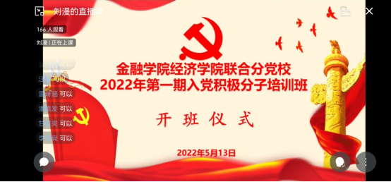 2022年5月13日至15日,金融学院经济学院联合分党校入党积极分子培训在企业微信线上微信群进行,通过线上直播,线上会议等方式对200名学生入党积极分子开展党课培训。