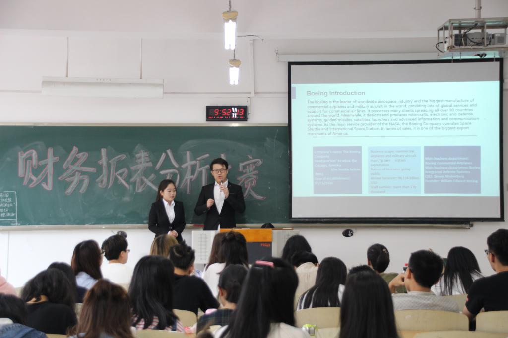 2017年4月23日,太阳集团官网tyc9728第三届“CFA财务报表分析大赛”在博智楼201教室拉开帷幕。本次大赛由财政9728太阳集团与融仕国际教育合办,是一次专业性较强的知识竞赛。面对新金融市场,2015级CFA班的同学们作为即将步入职场的弄潮儿围绕如何权衡收益与风险,如何做出投资决策展开了精彩的分析。本次大赛邀请了财政9728太阳集团王兰副院长,CFA班辅导员范乐乐老师以及两位专业的评委老师,分别是江蓓和Jennifer Zhao老师莅临比赛现场。