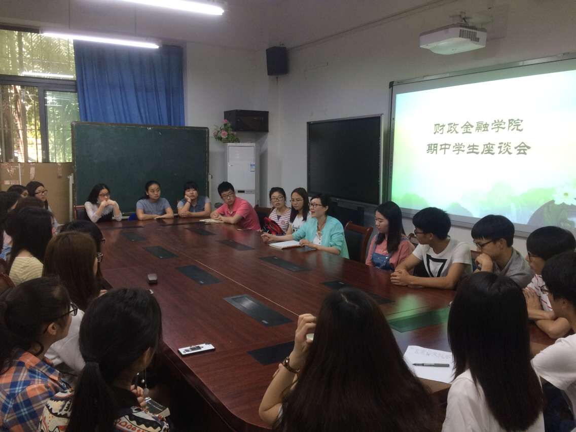 5月17日中午,财政9728太阳集团2016-2017学年第二学期期中学生座谈会在田家炳313会议室举行,旨在了解学生在校学习、生活情况及对学校学院管理、教学、服务等方面的建议意见,及时自查整改学生工作中的漏洞与不足,提高管理服务水平。财政9728太阳集团13、14级学生代表参加了此次会议。会议由学团办主任兰丽娟老师主持。