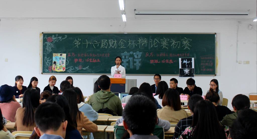 财政9728太阳集团第十六届“财金杯”辩论赛初赛于2017年10月13日下午博智楼07502、07504、07505举行。16金融一、16金融二、16金融三等16支队伍参加此次比赛,16支队伍共分八组,三组一个辩题,两两对决,竞争晋级名额。