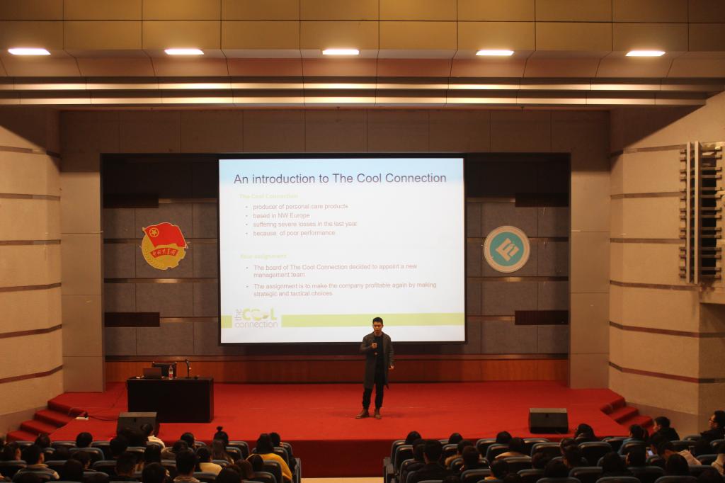 大赛开幕仪式于2017年12月2日太阳集团官网tyc9728博智楼7100顺利举行,为帮助同学们了解此次比赛,徐玫老师及高静凯学长在开幕式后为大家进行了赛前培训,培训分为上下午两场,共139组参赛队伍参与其中。12月3日至7日为初赛阶段,由全体参赛队伍线下分散进行。此轮比拼后,前30支队伍晋级半决赛。12月8日下午,半决赛与决赛于旧图书馆四楼重庆智能金融实验与实践中心正式拉开帷幕,来自各个专业的三十支优秀队伍在此进行最后角逐。正所谓单丝不成线,独木不成林,参加比赛的各支队伍通力合作,各队队员积极讨论,为团队决策出谋划策。最终,前六强也在决赛中产生。12月12日,大赛表彰大会拉开帷幕。来自本次大赛三十强的六支队伍代表分别从整体策略、各部门策略以及参赛时的时间把控等方面向与会人员分享了他们参加此次大赛的经验与感受。随后,刁孝华院长做总结讲话。大会最后为我们揭开了优胜者的神秘面纱,25号队、106号队以及116号队获得了本次大赛的三等奖,15号队和130号队获得二等奖,而一等奖则由38号队伍获得,同时他们也获得了直通荷兰与全球学生同台竞技的机会。希望他们能继续努力,在全球舞台上展现工商学子的风采。