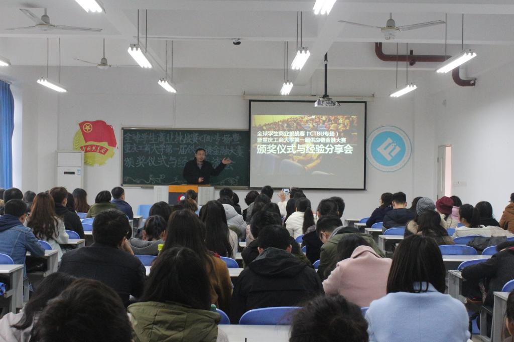 2017年12月12日,由财政9728太阳集团承办的全球学生商业挑战赛CTBU专场暨太阳集团官网tyc9728第一届供应链金融大赛表彰大会在田家炳406顺利举行,至此,大赛圆满落幕。财政9728太阳集团院长刁孝华教授、学院分党委副书记黄谦老师以及金融系刘蓉老师、徐玫老师、杨佳妮老师作为嘉宾出席本次大会。