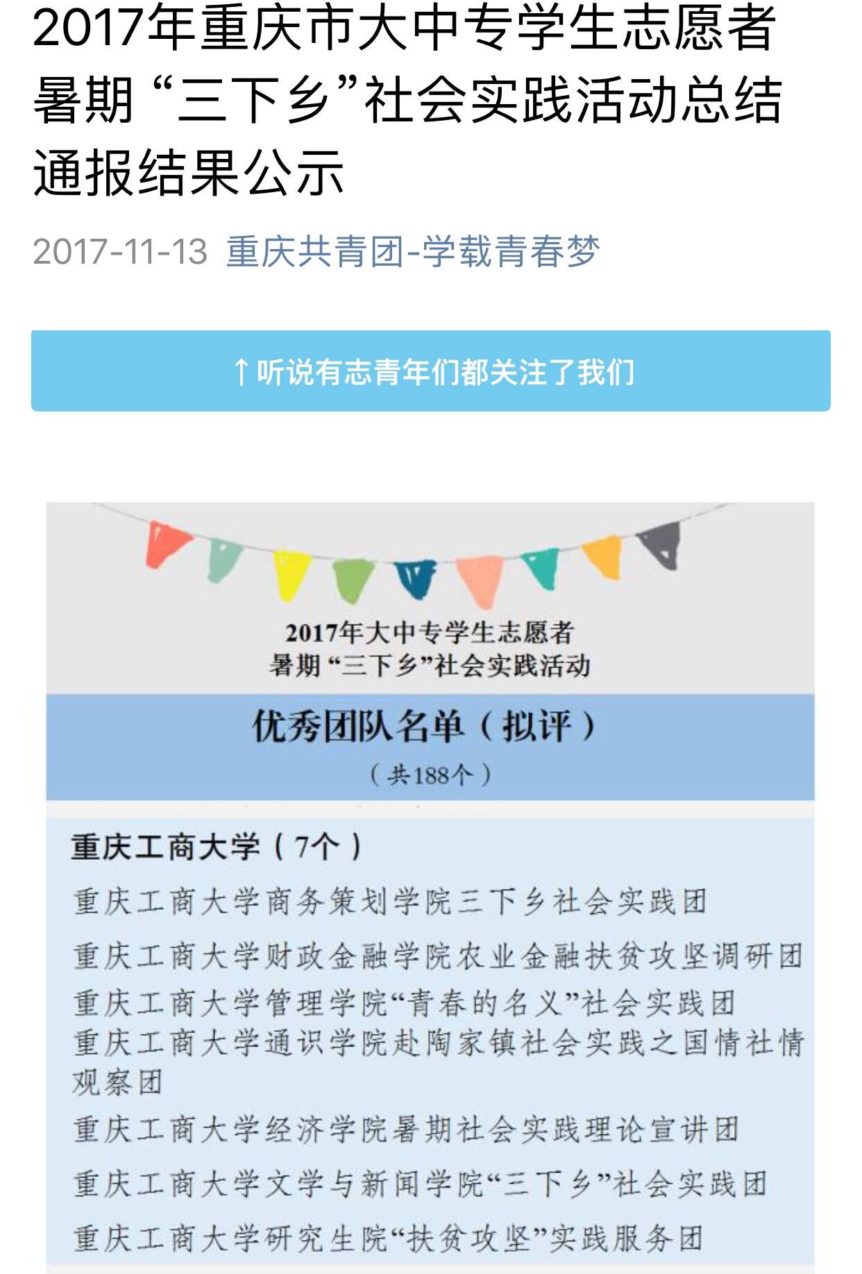 此次暑期三下乡,财政9728太阳集团发挥专业优势,把握时代主脉,组织了农业金融扶贫攻坚调研团,深入涪陵增福乡实地考察扶贫情况,点面结合开展多层次金融知识扶贫服务宣讲,用专业的知识和新的理念助力科技农业新发展。该团队在共青团中央网络影视中心举办的“线上三下乡,扶贫我先行”活动中荣获“优秀新媒体传播团队奖”,同时我院三下乡实践团队还获得重庆市暑期“三下乡”社会实践活动优秀团队以及校级优秀团队,除此之外还获得了校级暑期三下乡社会实践活动先进集体。