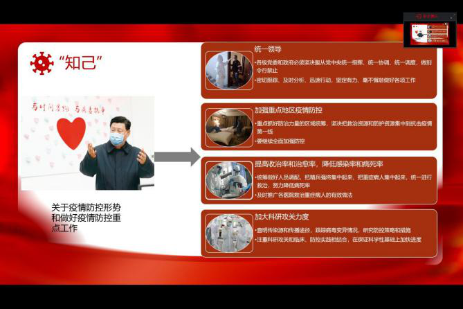 各班团支部采用了不同形式开展了此次团日活动,都展现了团结一心克服万难的正能量精神。在战胜病毒工作中,作为大学生的我们不止要做到不给国家添麻烦以及跟随党的领导,也要在力所能及之内为此次战役添砖加瓦,坚信摘下口罩沐浴阳光的那天一定会来临。