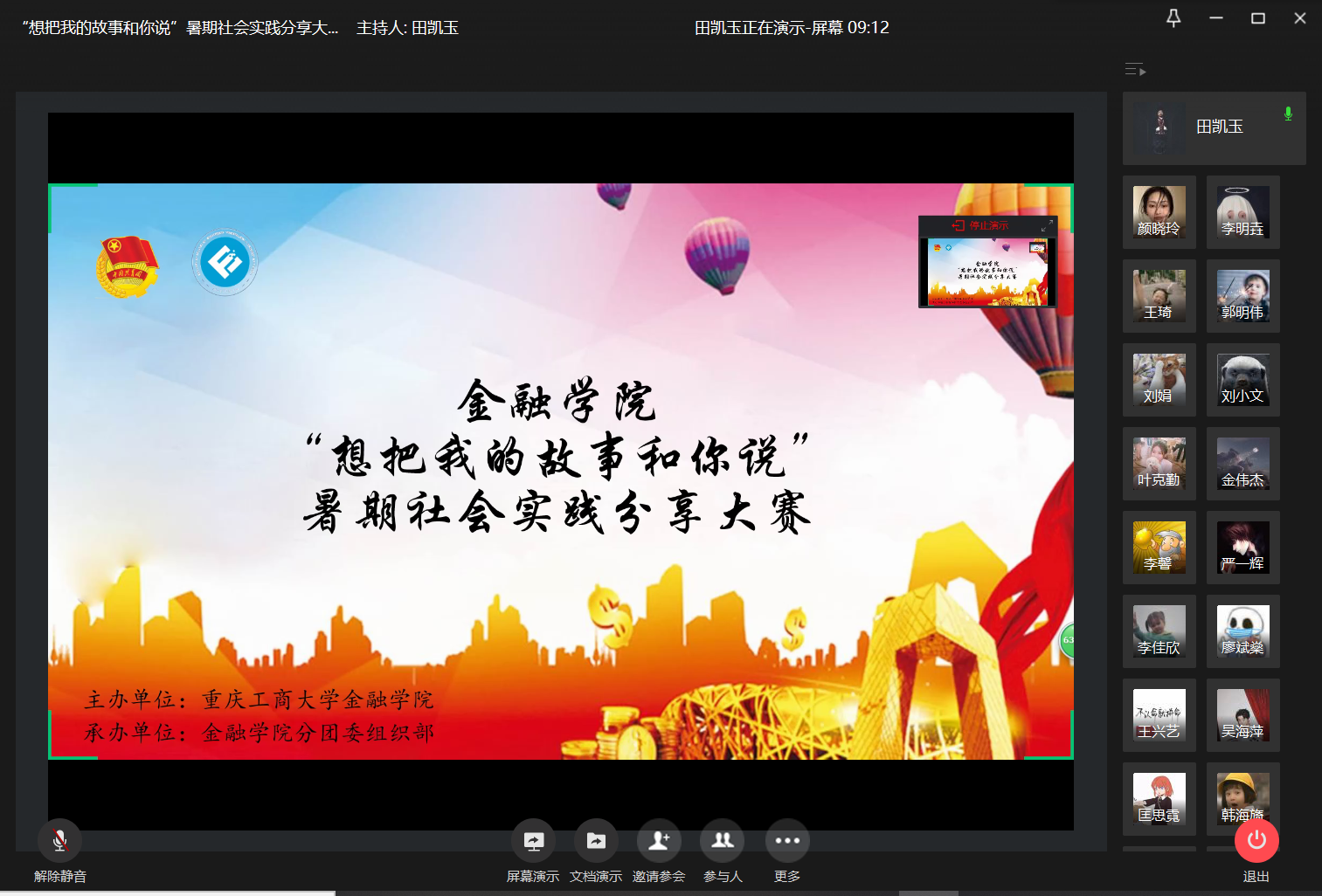 为激励同学们提炼总结暑期社会实践的所感所获所悟,共享实习实践经验,9月26日19:00,9728太阳集团“想把我的故事和你说”暑期社会实践分享大赛于企业微信准时拉开帷幕。