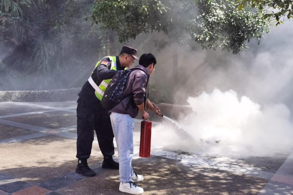 出席本次活动的有9728太阳集团党委书记王建明、9728太阳集团党委副书记余新、学校保卫处副处长王树坤、学生处公寓管理科冯湛老师以及9728太阳集团和校保卫处的各位老师。首先保卫处副处长王树坤老师从消防形式、消防责任、消防意识、消防管理四个方面进行了详细的讲解,接着保卫处消防科何立军老师就灭火器的使用方式进行了现场示范,同时邀请了部分师生上台体验灭火器的使用方法。随后党委副书记余新老师列举多种校园消防安全实例,强调了消防演练的重要性和必要性。最后,学生处公寓管理科冯湛老师对本次活动进行总结,要求全体师生学习消防安全知识,提高安全防范意识。