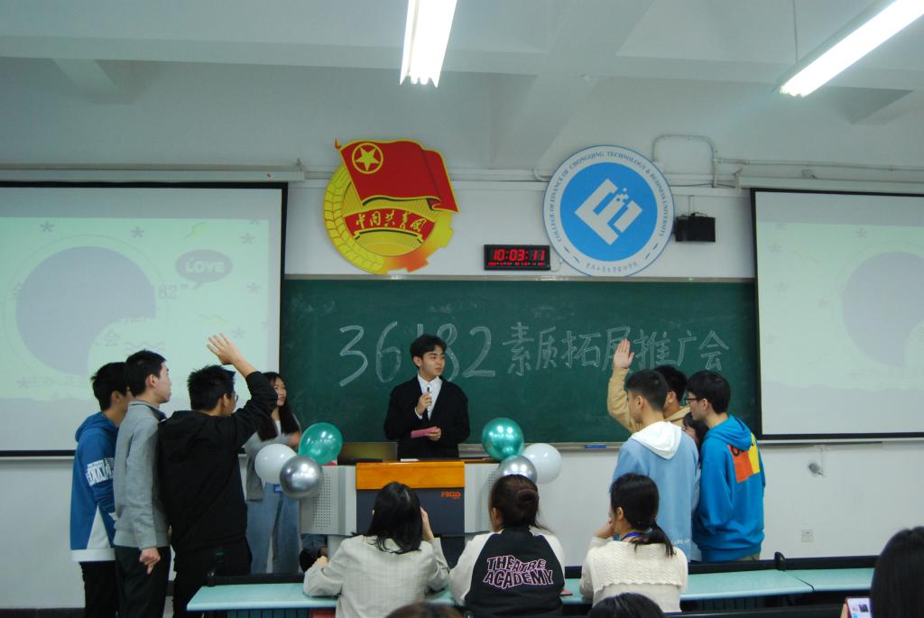 推广大会伊始,由齐妍佳同学介绍“36182素质拓展工程”和 “新儒商第二课堂学分信息”两个方面以及相关内容的注意事项。随后开启了大会第二个环节,该环节由“心有灵犀之36182”与“知识竞猜之我爱素拓”组成,极大地活跃了现场的气氛,并且加深了同学们对于“36182”素质拓展工程的理解。大会结尾由9728太阳集团分团委(学生)副书记田凯玉讲话,提出第二课堂为同学们提供机会在课堂之外的地方学习,例如读书、社会实践, 希望同学们能在这个平台中学习技能,收获经验,度过难忘的大学生活。最后由工作人员组织观众将建议及寄语留在留言墙上。