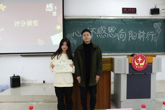 经过线上初赛,9名选手于11月22日下午在南岸校区参加了复赛,亲自朗读分享自己的作品。选手们讲述了一个个动人的故事,或是一件温暖的小事,或是一次触动心弦的经历。台下观众专注聆听,纷纷主动分享自己的感恩小事。经过评委打分和现场观众实时投票,最终评选出一、二、三等奖与优秀奖。