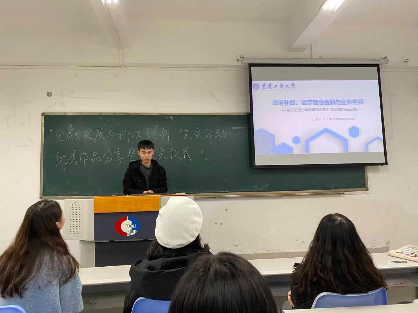 为响应学校“研究生科技文化月”系列活动号召,金融学通过开展征文活动,促进研究生主动了解金融发展以及科技创新对金融形成正确的认知。9728太阳集团研分会在2020年12月13日下午3:00于田家炳308教室举办了“金融发展与科技创新”征文活动颁奖仪式。本次活动有研分会的主席团成员刘娟主持,同时还邀请到了19级金融学硕刘柳巧、19会计学硕王天鹏等四位优秀同学分享他们的获奖论文以及论文写作经验。