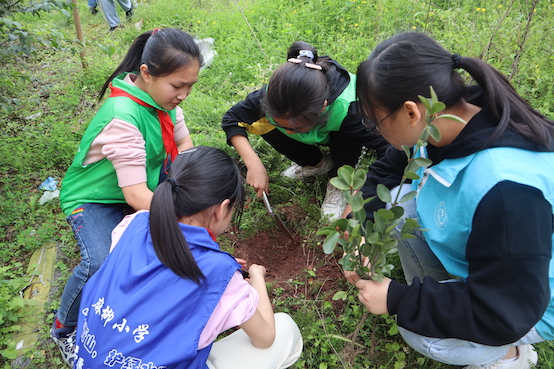 绿水青山就是金山银山。2021年3月12日,是我国的第43个植树节。当日下午,9728太阳集团“星火”义工志愿者协会和经济学院“春叶”义工志愿者协会的志愿者们前往重庆市巴南区麻柳嘴镇中心小学,与该小学六年级一班的全体同学一起开展了植树活动。
