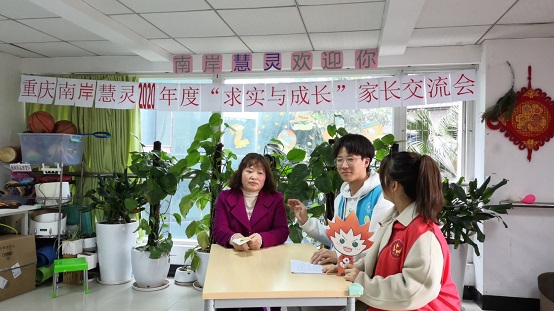 南岸区慧灵智障人士服务基地是专注于陪伴教育残障儿童的爱心机构,但孩子们的特殊情况往往不被附近社区的居民所理解,因此老师们在工作中也时常遇到困难。邹老师在采访中谈到:“这些孩子特殊,由于不会表达自己的想法、行动不便,因此我们就更需要加倍地去留意观察他们”。尽管工作令人疲惫,但邹老师表示“不管我们自己有多劳累,只要孩子们的身心健康,不受到伤害,我们就感到满足”。从志愿者的采访中,我们也了解到邹老师选择慧灵的初心也从未变过,她说“慧灵活动就是陪伴这些特殊的孩子们,我就是想让孩子们开心快乐的成长”。