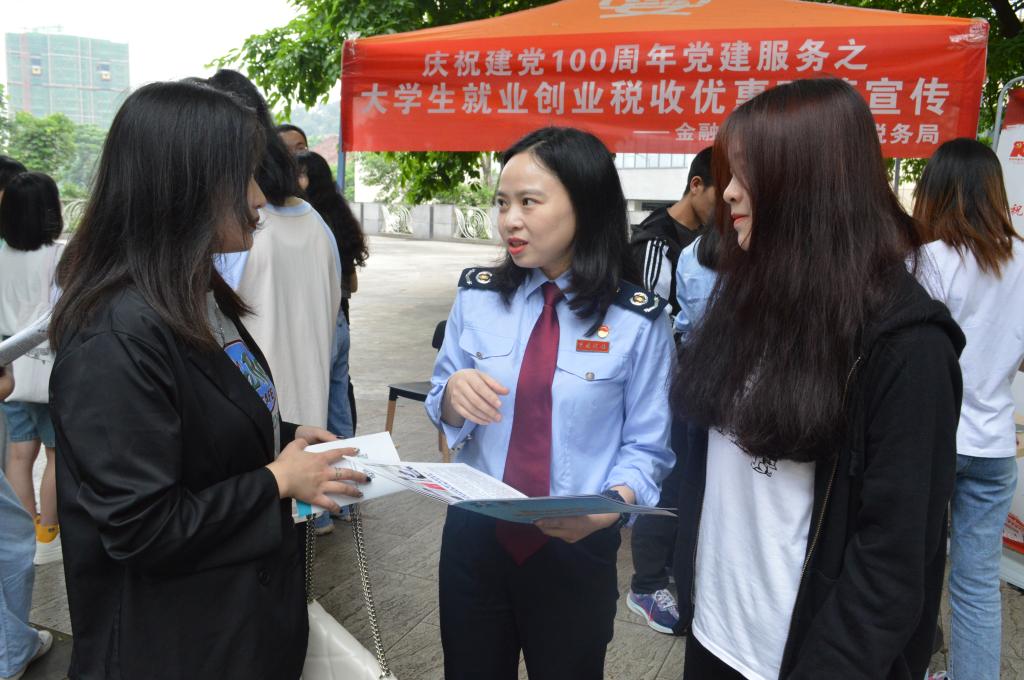 首先,税务局的工作人员和9728太阳集团的学生志愿者们在校内进行了大学生就业创业税收优惠政策的宣讲,为同学们耐心解答关于税收政策的疑惑、细心普及学习生活中的税收知识,吸引了不少同学的参与。宣讲内容涵盖:国家规定继续实施就业见习补贴提前发放政策,精准提供创业培训、创业服务,按规定落实创业担保贷款及贴息、创业补贴、场地支持……让同学们切实体会到了党和国家对学生发展的重视和关爱。