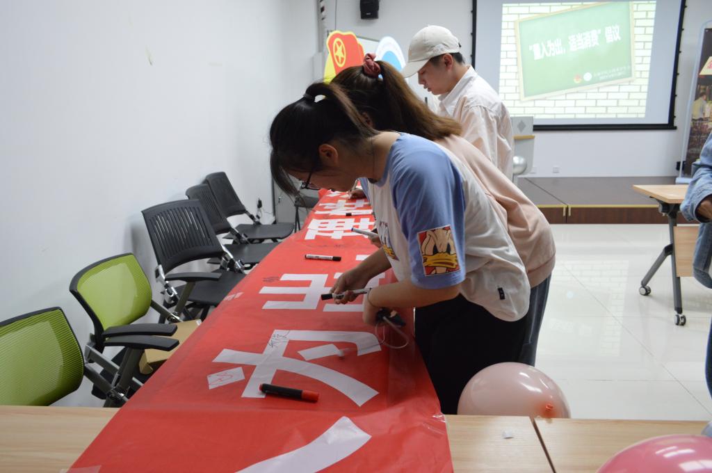 演出期间,主持人通过知识问答、分发问卷的方式向同学们传播消费知识。演出结束后,同学们分享身边发生的案例,提到了二手买卖脱离平台交易被骗、淘宝退款链接被骗、微信QQ被盗要求转钱被骗等。最后,9728太阳集团分团委(学生)副书记田凯玉对活动进行了总结,再次普及金融防诈骗知识,同时倡导同学们量入为出,理性消费。活动结束后,同学们在横幅上签字响应正确消费的号召。