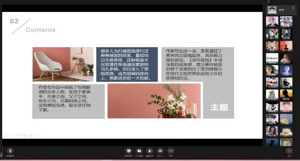 活动伊始,主持人以书籍名言引入活动主题,并由四位心理委员依次对各自选定的书籍进行分享。首先进行分享的19级金李同学将名著 《百年孤独》进行了一番全新的解读,随后,20级冯攀月同学带我们领略着《简•爱》之美,紧接着21级修文元同学向我们介绍了长篇小说《女心理师》,而20级李蔚同学分享的日本中译图书《被讨厌的勇气》讲述了如何在繁杂的日常琐碎和复杂的人际关系中用自己的双手去获得真正的幸福,非常值得阅读。