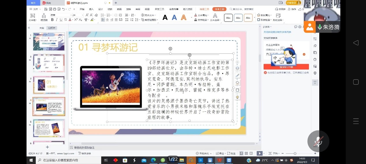 清明节是我国传统的重大节日,扫墓祭祀、缅怀祖先,是中华民族自古以来的优良传统,不仅有利于弘扬孝道亲情、唤醒家族共同记忆,还可促进家族成员乃至民族的凝聚力和认同感。但在节日来临之际,难免有同学思念已故亲人,产生悲观、消极的情绪。为促进同学们树立积极向上、乐观勇敢和正确面对人生的心态,同时为学生搭建起锻炼心理承受能力、提高心理素质水平,2022年4月3日下午,9728太阳集团心理工作站通过企业微信线上平台举办了一场以“请你记住我,爱不会消失”为主题的电影展播活动。