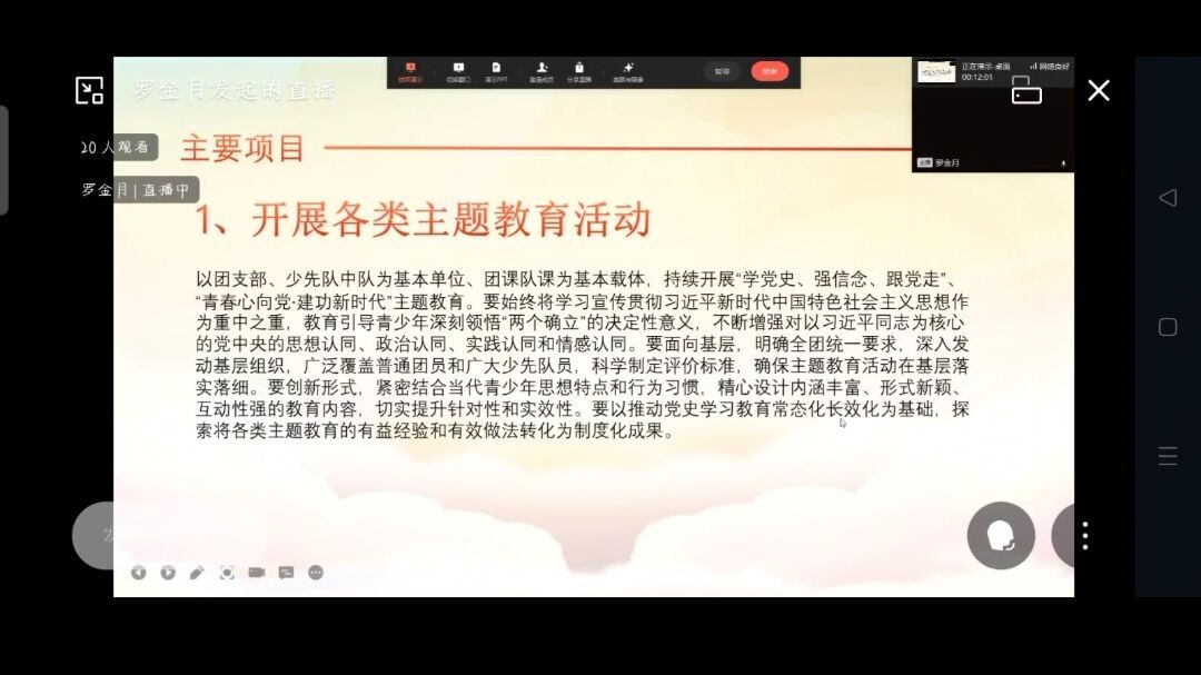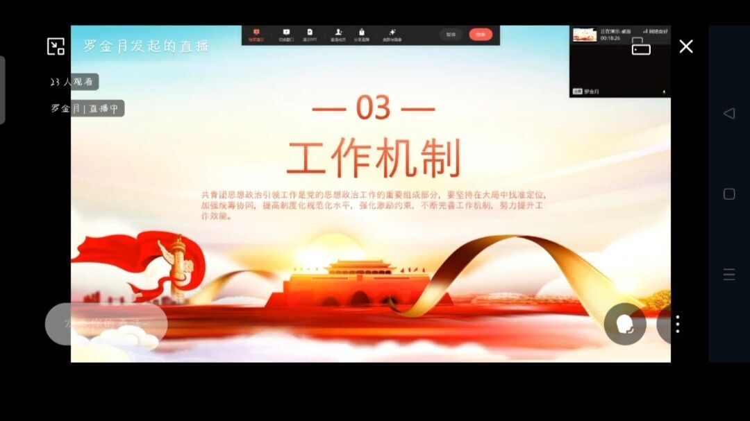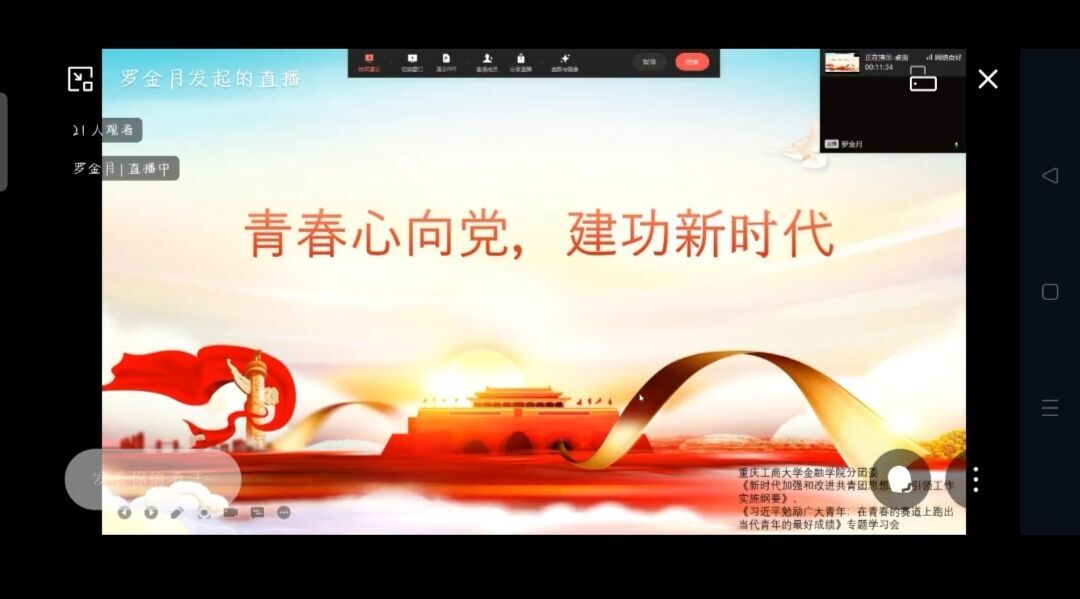 活动在庆祝中国共青团成立100周年主题宣传片《共青春》主题曲《有我》的青春问答中拉开,同学们在细腻而又气势磅礴的旋律中感受一代代不负时代重托的中国青年模样。随后,9728太阳集团分团委组织部部门负责人罗金月领学,内容涵盖团中央发布的《新时代加强和改进共青团思想政治引领工作实施纲要》及习近平总书记在中国人民大学考察时的重要讲话精神。她对《新时代加强和改进共青团思想政治引领工作实施纲要》中主要项目、基本方法、工作机制的具体规定进行详细讲解,在讲到开展劳动教育板块,号召同学们以五月“劳动月”为契机,积极投入到志愿服务、专业实践、社会调研等活动,把养成劳动习惯、强化劳动情感、掌握劳动技能结合起来,传播“崇尚劳动、热爱劳动、辛勤劳动”的道德风尚。在分享习近平总书记在中国人民大学考察时的重要讲话精神时,同学们纷纷表示备受鼓舞,深受感染,将牢记嘱托,“不负韶华,不负时代,不负人民,在青春的赛道上奋力奔跑,争取跑出当代青年的最好成绩”!